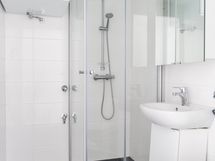 - Pesutilojen varusteet: WC-istuin, suihku, pesukoneliitäntä, pesuallas, allaskaappi, peilikaappi, lattialämmitys ja bidee-suihku.