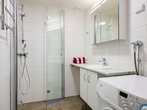 - Suihku, Pesukone, Pesukoneliitäntä, Mukavuuslattialämmitys, Tilaa pesukoneelle, Kaapisto, Allas, Suihkuseinä, Peilikaappi