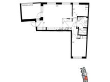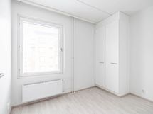 Tämä viidennen kerroksen kolmio tarjoaa selkeän ja miellyttävän pohjaratkaisun, jossa tilat asettuvat käytännöllisesti arjen tarpeisiin. Olohuone jatkuu lasitetulle parvekkeelle, joka tuo asuntoon lisätilaa ja mahdollisuuden nauttia ulkotilan tunnelmasta säältä suojassa.