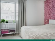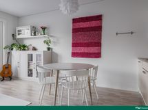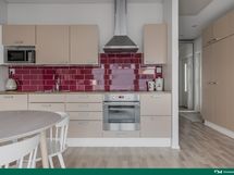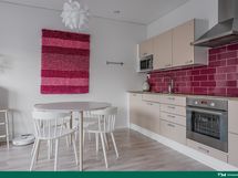 - Jääkaappi/pakastin, uuni, keraaminen liesi, astianpesukone, astianpesukoneliitäntä, kaapistot, liesituuletin hormiin. Lattia: Laminaatti. Seinät: Maalattu