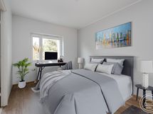 - Pesutilojen varusteet: Suihku, pesuallas, allaskaappi, peilikaappi, pesukoneliitäntä ja wc-istuin.