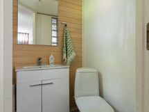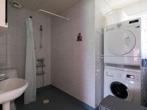 Kylpyhuone, lattialämmitys, suihku, peilikaappi, pesukoneliitäntä, kiinteät valaisimet