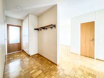 Tässä toisen asuinkerroksen läpitalon kolmiossa on erityisen toimiva pohjaratkaisu. Tilavan olohuoneen yhteydestä on käynti länsiparvekkeelle, josta aukeaa avarat näkymät viihtyisälle pihalle. Keittiö on myös hyvän kokoinen ja sekä kaappi- ja työtasoja on mukavasti ja varusteena astianpesukone. Makuuhuoneet sijaitsevat kivasti eri puolella asuntoa. Säilytystilaa on runsaasti useissa kaapistoissa ja isossa vaatehuoneessa. Kylpyhuoneen yhteydessä on oma sauna. Erillinen wc.