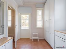 - Vaatehuone, kaapistot, lämmin ulkovarasto ja tekninen tila/varasto kellarissa