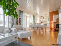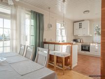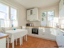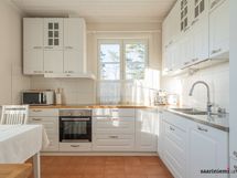 - Keittiön varusteet: Jääkaappipakastin (2 kpl integroidut), erillisuuni, liesi, liesituuletin ja astianpesukone. Liesi: Keraaminen liesi. Työtason materiaali: Puu. Keittiön lattia on laatoitettu Villeroy & Bochin laatalla. Työtasot ovat massiivipuuta kirsikka.
