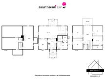 - Pinta-alan peruste: Ei tarkistusmitattu. Pinta-ala voi siis olla edellä mainittua pienempi tai suurempi. Muiden tilojen pinta-ala 33,4 m2 on kellarin teknisen tilan/varaston ja wc:n pinta-ala.