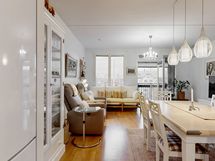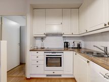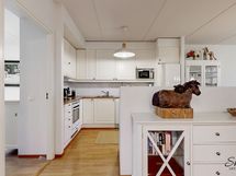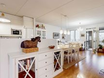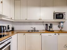 - Ihastuttava avokeittiö jossa kelpaa kotikokin kokkailla ja seurustella samalla. Keraaminen liesi, jääkaappi/pakastinyhdistelmä, liesituuletin, astianpesukone.