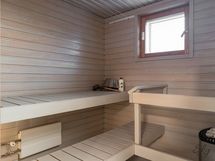 - Kuvaus: Ikkunallinen sauna. Lattia laatoitettu ja seinät paneloitu, sähkökiuas.