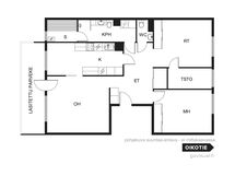 - Huoneistoa ei ole tarkistusmitattu. 90,5 neliömetriä on yhtiöjärjestyksen mukainen pinta-ala.