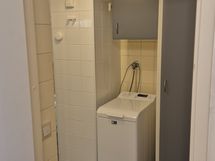 - Suihku, Suihkuseinä, Pesukonevalmius, Peilikaappi, Allaskaappi, Rättipatteri, Laattaseinä, Laattalattia, WC+Erillinen WC, Lattialämmitys