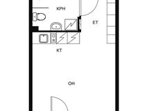 - Pesutilojen varusteet: WC-istuin, suihku, pesukoneliitäntä, peilikaappi, pesuallas ja lattialämmitys.