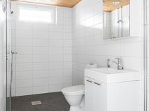 - Pesutilojen varusteet: WC-istuin, suihku, pesukoneliitäntä, suihkuseinä, lattialämmitys, bidee-suihku, pesuallas, allaskaappi ja peilikaappi.