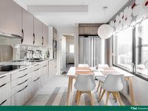 - Keittiö hienosti uusittu v.2018: Jääkaappi, pakastin, induktioliesitaso, liesituuletin, ergonominen erillisuuni, kalusteisiin integroitu astianpesukone (uusittu 2025) ja mikro, työtasot laminaatti.