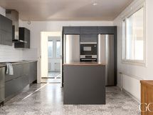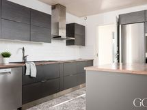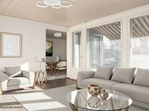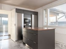 - Keittö- ja ruokailutila yhdistelmä. Keittiö on vuonna 2018 remontoitu Aurinkokeittiöt. AEG:n