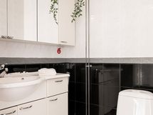 suihku. Laattalattia ja kaakeliseinä. Erillisten WC:n lukumäärä: 1. Erillisen WC:n kuvaus: Erillinen wc, jossa on peilikaapit, pesuallas, allaskaapisto, bidee-suihku, wc-istuin. Laattalattia ja