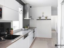 - Keittiön varusteet: Jääkaappi (uusittu 2020), erillinen pakastin, erillisuuni (kiertoilma), liesi, liesituuletin (aktiivihiilisuodatin) ja astianpesukone (uusittu 2025). Liesi: Induktioliesi. Työtason materiaali: Laminaatti. Avara avokeittiö, jossa on tilaa isommallekin ruokailuryhmälle.