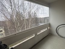 Asunnossa on tilava lasitettu parveke, josta avautuu näkymä sisäpihalle. Ikkunoissa on sälekaihtimet. Asunnossa on hyvin säilytystilaa. Lisäksi käytössä on kellarikomero, pyörävarasto ja pesutupa.