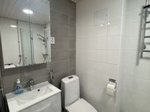 Kylpyhuone on juuri remontoitu linjasaneerauksen yhteydessä. Asunnon lattiassa siistit laminaatiti ja seinät maalatut. Linjasaneeraus on valmistunut 12.12.2025. Karkea arvio tälle huoneistolle on noin 53.000 euroa. Lainaosuuksia ei vielä ole virallisesti laskettu, koska rahoitukseen sisältyy myös julkisivujen samauksien uusinta, joka päästään toteuttamaan aikaisintaan keväällä. Kun hankkeen kokonaiskulut ovat selvillä, päästään laskemaan huoneistokohtaiset osuudet.