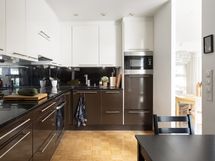 - Liesi: induktio, erillisuuni. Työtasot: kivi. Kylmäsäilytys: jääkaappi, pakastin. Varustus: liesituuletin, mikroaaltouuni, astianpesukone. Keittiö remontoitu 2009, kodinkoneet integroitu