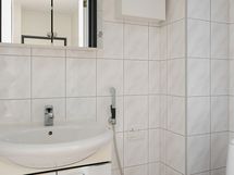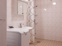 - Pesutilojen kuvaus: VARUSTUS: Suihku, suihkuverho, pesuallas, allaskaappi, peilikaappi valaisimella, pesuhana, pesukoneliitäntä, lattialämmitys.