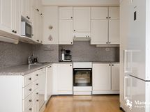 - VARUSTUS: Jääkaappipakastin, keraaminen liesi, liesituuletin, pesuallas, pesuhana, astianpesukone, kaapistot, välitilan kiinteät valaisimet.