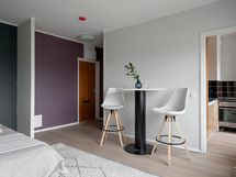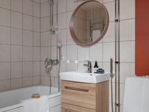 - Varustus: kylpyamme, pesukoneliitäntä, wc-istuin, suihku, peili, kiinteät valaisimet.
