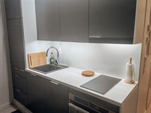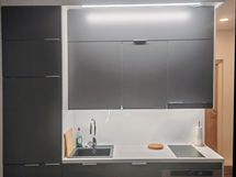 - Keittiön varusteet: Jääkaappipakastin, liesi, liesituuletin, uuni ja astianpesukone