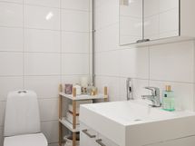 - Pesutilojen kuvaus: Kylpyhuoneen seinät ja lattiat laattaa, suihku, wc-istuin, allas, peilikaappi, allaskaappi, suihkuseinä, vesikiertoinen lattialämmitys. Kylpyhuoneessa tilaa pesutornille, pyykkikaappi. Erillisten WC:n lukumäärä: 2. Erillisen WC:n kuvaus: Wc-tilan lattia ja seinät laattaa, wc-istuin, allas, allaskaappi, peilikaappi, vesikiertoinen lattialämmitys, ikkuna.
