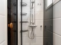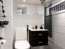 - Pesutilojen varusteet: WC-istuin, suihku, suihkuseinä, pesuallas, allaslaatikosto, bidee-suihku, peilikaappi ja lattialämmitys. Pesutilojen kuvaus: Tyylikkäästi vuonna 2021 uusittu kylpyhuone, jossa tilaa myös pyykkihuollolle.