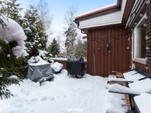 - Viihtyisä ja yksityisyyttä tarjoava terassi jossa laudoitus on juuri uusittu.