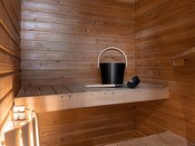 - Kiuas: Sähkökiuas. Suloinen pikkusauna, jossa on ihana rentoutua päivän päätteeksi. Sauna rakennettu aiempien omistajien toimesta vaatehuoneen paikalle (kunnossapitovastuu osakkaalla).