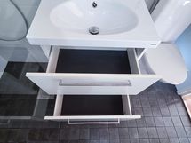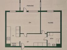Asunto tuntuu neliöitään suuremmalta, ja esimerkiksi makuuhuoneeseen mahtuu vaivattomasti 180cm sänky ja yöpöydät sängyn kummallekin puolelle. Oleskelutilassa on hyvin tilaa isollekin ruokailuryhmälle, sekä sohvalle ja kahvipöydälle.
