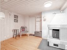 Takkahuoneen lattia puuta, seinät panelia