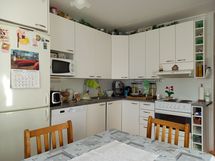 - Astianpesukone, Liesituuletin, Sähköliesi, Jää-pakastinkaappi, Laminaattitasot, Paljon kaappi tilaa, Suuri tiski pöytä, marmori jäljitelmä, Teräs kalusteet, Jää-pakastin kaappi,astianpesukone liitetty omaan pisto rasiaan omalla kaapelilla ryhmä keskuksesta uuden sähkö määräyksen mukaisesti.