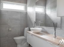 - Pesutilojen varusteet: Suihku (2 sadesuihkua), kiinteät valaisimet ja lattialämmitys. Erillisten WC:n lukumäärä: 2. Erillisen WC:n varusteet: WC-istuin, peili, pesuallas, allaskaappi, bidee-suihku ja lattialämmitys. Erillisen WC:n kuvaus: Erillinen Wc löytyy kodin molemmista kerroksista.