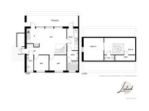 - Pinta-alan peruste: Ei tarkistusmitattu. Pinta-ala voi siis olla edellä mainittua pienempi tai suurempi. Rakennuslupapiirustusten mukaan asuinpinta-ala 1krs 54m², 1krs talousala 15,1m² ja 2krs 32,7m². Kerrosala ja kokonaisala 1krs 62,5m² + talousala 17,8m², 2krs talousala 40,3m². Koko kiinteistön asuinpinta-ala 1krs 108m², 1 ja 2 krs talousala 95,6m². Kokonaisala 241,2m². Suomen Asiakastieto Oy:n muodostaman rakennuksen perustiedot raportin mukaan asuinpinta-ala 54m² ja koko kiinteistön asuintilojen pinta-ala yhteensä 108m², kerrosala: 241m² ja kokonaisala: 241m².