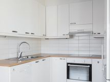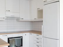 - Olohuoneeseen yhdistyvässä keittiössä jääpakastinkaappi, astianpesukone, kalusteuuni, keraaminen liesitaso, liesituuletin, kiinteät valaisimet, kaapistot/laatikostot. Tasot laminaattia, välitilat laatoitettu, parkettilattia.