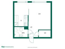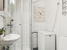 - Kylpyhuone, suihku/suihkukaappi, peilikaappi, pesukoneliitäntä, pyyhekuivain.