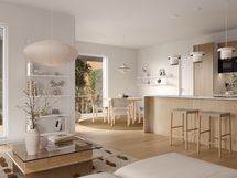Vantaan Vapaalaan rakentuu ihastuttava kuuden erillistalon yhtiö, jossa on kaksi eri asuntokokoa: 103m2 ja 116m2. Tämä koti on 1-tasoinen, kolme makuuhuonetta, yhtenäinen olohuone ja keittiö. Eteiseen astuttaessa valo tulvii läpi talon ja tuo kodin tarkoin suunnitellut yksityiskohdat esiin. Eteisen vieressä on kätevä lämmin varastotila, mihin on käynti sekä sisäpuolelta että ulkopuolelta. Kaksi makuuhuonetta sijaitsee eteisen vieressä. Päämakuuhuone on sijoitettu erilleen muista makuuhuoneista ja sieltä on suora käynti kodin kodinhoitotilaan ja pesuhuoneeseen. Olohuone ja keittiö on yhtenäistä tilaa ja keittiön kruunaa tilava saareke. Ruokailutila jää keittön jatkeeksi. Ruokailutilasta on käynti kodin suojaisalle katetulle terassille. Kodissa on kiinnitetty erityistä huomiota pohjaratkaisuun ja siihen, että arki toimisi kodissa mahdollisimman soljuvasti. Huonekorkeus on oleskelutiloissa 2700mm, joten tilan tunnun voi aistia hyvin.