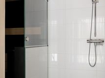 - Upeassa pihasaunassa lauteet ja seinät puuta, lattia laattaa, sähkökiuas. Pihasaunan yhteydessä myös suihkutila, jonka lattia ja seinät laattaa, suihku, sähköinen lattialämmitys.