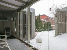 - Tilavat terassialueet piha-alueella josta osa lasitettua terassia ekä sisääntulossa.