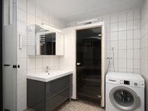 - Varustus: suihkukaappi, pesukoneliitäntä, peilikaappi.