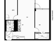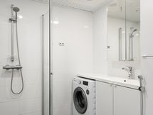 Varustus: suihkuseinä, pesukoneliitäntä, lattialämmitys, wc-istuin, suihku, peili.