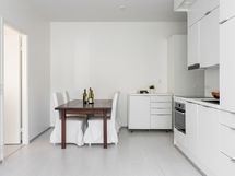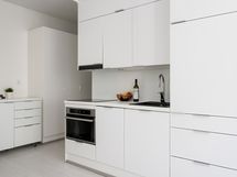 Liesi: erillisuuni, liesitaso. Kylmäsäilytys: jääkaappi/pakastin. Varustus: liesituuletin, astianpesukone.