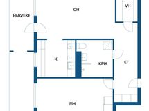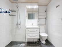 - Suihku, Pesukoneliitäntä, Mukavuuslattialämmitys, Tilaa pesukoneelle, Käsisuihku, Kaapisto, Allas, Suihkuseinä, WC-istuin, Peilikaappi