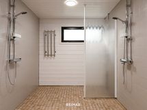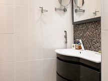 Varustus: suihku 2 kpl, suihkuseinä, lattialämmitys, kuivauspatteri. Erillisten WC:n lukumäärä: 2. Erillisen WC:n varusteet: WC-istuin, peili, allaskaappi ja bidee-suihku. Erillisen WC:n kuvaus: Kaksi erillistä wc:tä jotka remontoitu 2005 ja 2014.