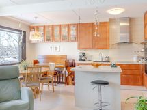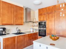 - Keittiön varusteet: Jääkaappipakastin (integroitu), astianpesukone (integroitu), mikroaaltouuni ja uuni. Liesi: Induktioliesi. Vuonna 2014 remontoitu Puustellin kaunis keittiö saarekkeella! Paljon kaappi-ja laskutilaa.
