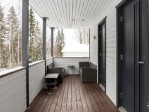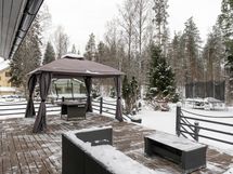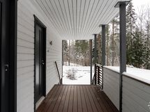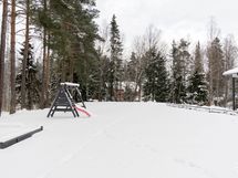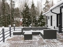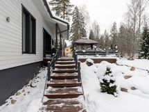 Länteen avautuva terassi ja näkösuojaisa takapiha luovat rauhaa sekä yksityisyyttä. Aamuaurinko paistaa suoraan kuistille, missä voit nauttia aamukahvit kesäisin. Kiinteistö sijaitsee omalla vehreällä metsään rajautuvalla tontilla, jossa pääset ihailemaan vuodenaikojen vaihtumista. Helppohoitoinen piha tarjoaa runsaasti tilaa rentoutumiseen, lasten leikeille ja kesäpäivien viettoon.