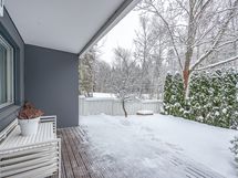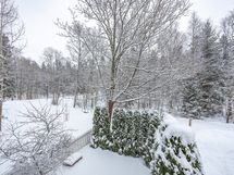 - Läpitalon huoneisto, josta näkymät metsään ja yhtiön pihalle.