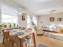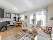 - Keittiön varusteet: Jääkaappipakastin, erillisuuni, liesi ja astianpesukone. Liesi: Keraaminen liesi. Puustellin keittiö laadukkain kodinkonein.
